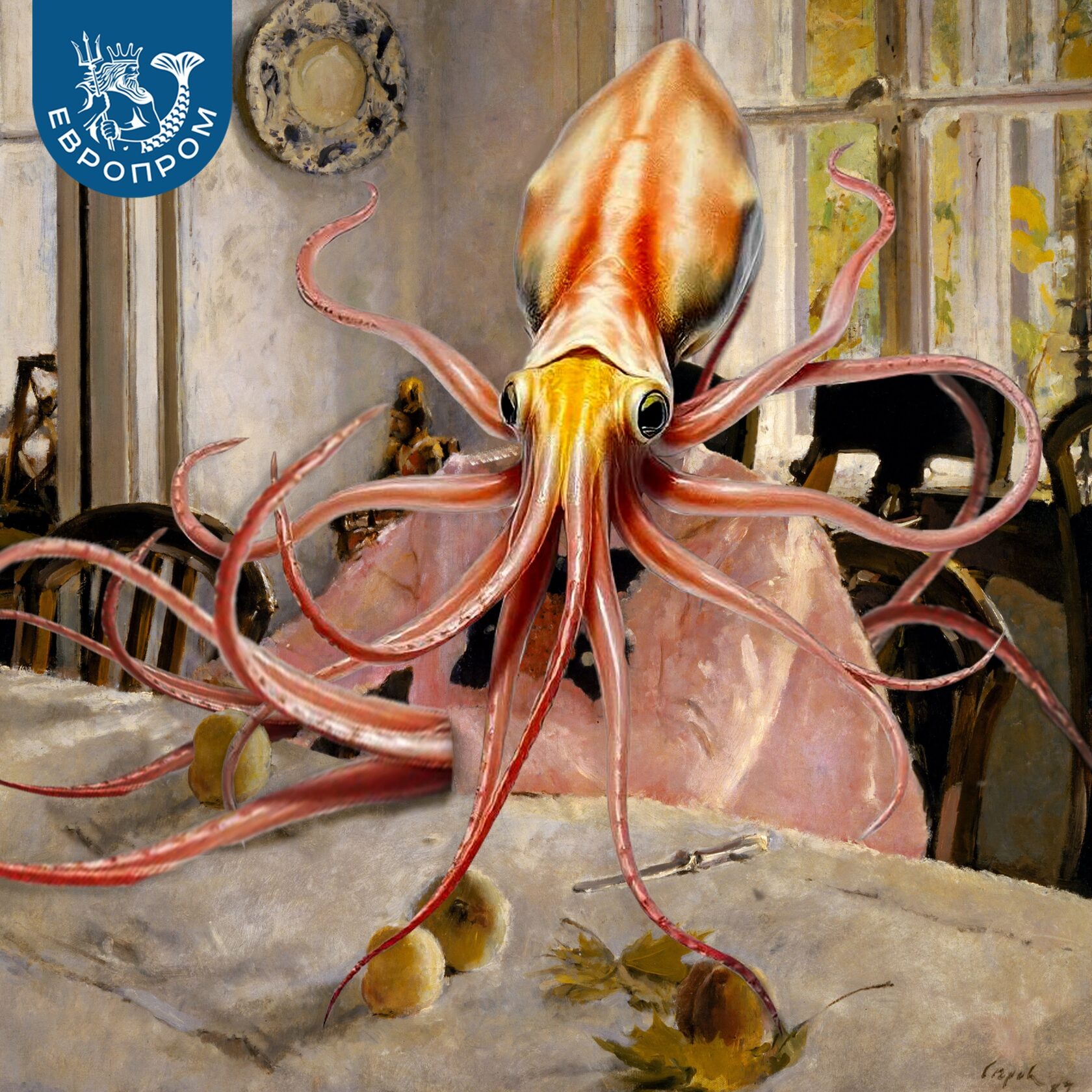 "Кальмар с персиками", диджитал-арт, 2025 г.